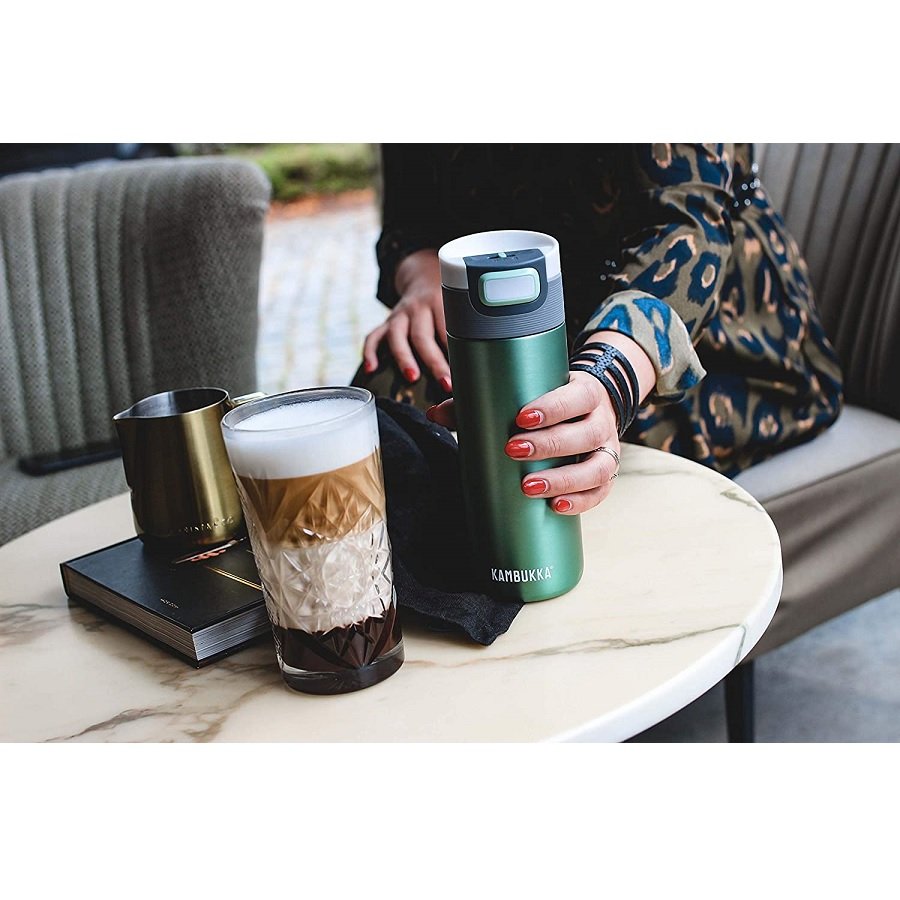 فلاسک با قابلیت نگهداری گرمای نوشیدنی تا 9 ساعت و خنکی آن به مدت 18 ساعت بسیار مناسب برای سرو قهوه در محیط کار یا یک نوشیدنی بسیار خنک بعد از یک ورزش سخت می باشد. این ماگ ها کاملا بدون نشتی بوده و شما با خیال آسوده می توانید آن را درون کیف خود گذاشته و همیشه نوشیدنی خود را به همراه داشته باشید. درب فلاسک قابلیت قرار گرفتن در سه حالت قفل ، چشیدن و نوشیدن را دارد. که به راحتی با دکمه ای که در روی درب قرار دارد می توان آن را تنظیم نمود.زمانیکه شما در حال راه رفتن، ورزش و یا فعالیتی هستید و فقط میخواهید یک جرعه از نوشیدنی خود میل کنید، حالت درب را در وضعیت چشیدن قرار می دهید.